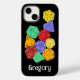 This cell phone case has colourful illustrations of fantasy game style dice with 4-sided, 12-sided and 20-sided dice. Below the graphic is a spot to add a name or other custom text. Perfect for fans of different RPG games and board games.