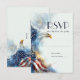 RSVP - Bald Eagle Patriotic USA 2026 SemiQuincentennial Wedding , 250 Anniversary of our country, United States of America , Vintage United States Bald Eagle with watercolor wings in stars and stripes , patriotic red white and blue , he carries the American flag on his shoulders. Perfect for a very patriotic USA 2026 SemiQuincentennial wedding. Design by: the_BarefootBride.com -