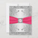This hot pink and FAUX silver foil (printed effects) floral RSVP card with a fuchsia PRINTED ON ribbon and faux engraved look silver medallion matches the spring or summer wedding invitation shown below. All the text is customizable and so is the paper choice. If you need assistance customizing this card, or if you require any other matching items in this same design, please email your request to niteowlstudio@gmail.com.