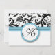 RSVP Cards-Black & White Damask Pool Blue Trim