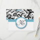 Aqua Damask Wedding Invitations, Response Cards, Insert Cards, Seating Charts, Wedding Seals, Just Married High Tops, Bride's Shirt, Postage and more --if you would like a glossy finish (glossy on front side only) order the basic, linen or metallic papers - for a matte finish order recycled, felt or speckled. These 3 papers are matte only where the card stock is bare - where-ever there is ink applied on the front you get some gloss - Monogram Elegant Choose from six paper types and nine colours. Vibrant, full-bleed, full-colour printing and free two sided printing. Each invitation comes with a white envelope.