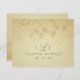 Élégantes cartes d'invitation de mariage automnal antique avec enveloppes, ornées de beaux rouleaux et feuilles romantiques dans des tons ivoire vieilli et sauge. Illustration © Teri Francis. Timbres-poste et cartes de vœux assortis disponibles dans la galerie.