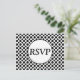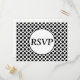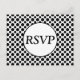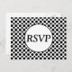A custom RSVP engagement or party postcard with a background pattern of black polka-dots on white with custom italic and block letters. Click Customize it to change fonts, sizing, background colours and more, even save your design for later.