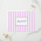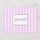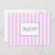 Custom RSVP response postcards with a simple striped background pattern of light and dark pink on white with custom script and block letters. Click Customize it to change fonts, sizing, background colours and more, even save your design for later.