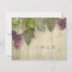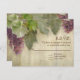 Custom 4.25" x 5.5" Invitations RSVP Response return card. This is a pretty, classy illustration design which is ideal for Summer, Autumn or Fall Rustic Vineyard outdoor country style weddings at a winery venue location. Beautiful red wine grapes and their leaves are hand painted original artwork by Audrey Jeanne Roberts. They have been placed over a warm, worn, distressed wooden fence board background that is antiqued with great texture and subtle decorative vintage printer's ornament swirl scroll elements that add a touch of elegance. The perfect mixture of formal and comfortable, elegant and trendy yet a timeless classic wedding invitation collection theme that will be as beautiful when you look at for your twenty fifth anniversary! There is a complete wedding invitation set with coordinating products for bridal shower, couple's shower, rehearsal dinners, ceremonies and wedding receptions.