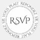 For all of your important occasions. The abbreviation RSVP is written in the centre, while the longer form "repondez s'il vous plait" is written in a circle around the edge of the label. This French phrase translates as "please respond."
