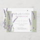Matching RSVP response cards with guest reply options you can edit. This invitation set begins with hand painted watercolor images by Audrey Jeanne Roberts. They are individual sprigs of French lavender flower blossoms in shades of lavender and purple with soft mint and sage green. They were painted from life in the herb garden flower fields near her home in Southern California. A double thin white border mixing grey and white stripes sets off the simple and modern style of the typography text layout. Hand lettered calligraphy font text reads, "kindly reply on or before" (we can customize these for you if you message us). Copyright all rights reserved.