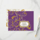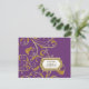 NOTE: This is a flat printed image, there are no jewels, raised layers or gold metallic elements. COLOR PALETTE: deep violet purple, soft creamy white with faux gold metallic glitter look DESIGN COLLECTION: Matching RSVP response return card. Inspired by Old Hollywood and her heyday glam era, this wedding invitation set is perfect for elegant, sophisticated, modern wedding celebrations. A classic, beautiful swirling leaf damask style pattern has been graphically designed to look like a silver edged gold glittery embroidered lace design with a golden buckle that has a diamond border over faux glitter. A contemporary typography layout for your invite wording and information updates this vintage retro design. A gorgeous, unique and pretty design for the most discriminating bride.