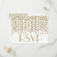 A pretty looking soft gold RSVP note card with strings of golden confetti on a white background. Design by Amelia Carrie for zazzle.com/GlitterInvitations Have a WONDERFUL event!!! Note: This is a graphic print of artwork and contains no messy glitter.