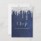 RSVP Grey Grey Silver Aqua Drips Wedding Blue Navy Card