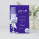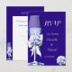 RSVP pour un mariage élégant mariage argenté bleu marine, fleurs de roses fleurs de verre de champagne floral.