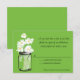 3.5x5 rsvp card: Perfect for a country style wedding or maybe you just love Mason Jars! Old vintage Mason Jar filled with white daisies against a Spring Grass Green background. If you have any questions on this design or want a colour change please email me paula@labellarue.com Also check for the INVITATION, RECEPTION and GUEST SEATING Cards to match!