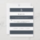 COLOR PALETTE: navy blue and white DESIGN COLLECTION: Matching vertical design RSVP response cards with menu choices (simply delete or replace the text on that line if you don't need them). With a chic and trendy design theme of wide stripes, this invitation has a contemporary trending style. Each layer of text alternates with the dark blue and white for a simple yet stunning effect. Bold graphic, yet stylish and fashion forward. We have a complete product set to coordinate. Monogrammed initial and rsvp information is easy to customize with the personalization template fields.