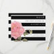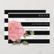 Correspondant aux cartes de réponse RSVP avec un thème design chic et tendance de larges rayures, cette invitation prend rétro vintage à un style contemporain tendance. Chaque couche de texte alterne avec le noir et le blanc pour un effet simple mais étonnant. Mélangé de vignes et de feuillage pour un design moderne en diagonale. Cette pivoine a été peinte à la main pour capturer son élégance et sa beauté éphémère pour une belle, jolie et féminine disposition. Graphique audacieux, mais élégant et de la mode en avant. Nous avons un ensemble complet de produits à coordonner. PALETTE DE COULEUR : noir et blanc avec des fleurs de pivoines de corail vert, rose pâle