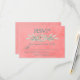 RSVP Pink and Green Flowers displays a pink parchment background with RSVP written in beautiful blue text. A pink and green flower is underneath. All information is listed on the front. Personalize yours today!