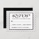 This fun RSVP card features a black and white polka dot frame highlighting your wedding / event information printed in script and easy-to-read black fonts highlighted against a crisp white background.