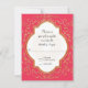 Matching RSVP Response return by mail card including white envelope. NOTE: This is a flat printed invitation, there is no real glitter or metal foil used. Effects are graphically produced. DESIGN COLLECTION: Beginning with hand drawn script swirl calligraphy flourishes that have been turned into a graphic glitter effect and paired with a double border quatrefoil style frame also in golden shimmery glitter effects. Inside the frame and behind your easily customized text template is a sunburst hand drawn line design. On the reverse side is a place to put your monogram initial inside the glittery starburst design. This invite is the perfect marriage of sweet, romantic sentimental design and modern elegance. Easy to customize for any occasion and a complete set of products are available. COLORS: Bright begonia, fuchsia hot pink, creamy off-white and digital gold glittering look.