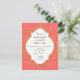 Matching RSVP Response return by mail card including white envelope. NOTE: This is a flat printed invitation, there is no real glitter or metal foil used. Effects are graphically produced. DESIGN COLLECTION: Beginning with hand drawn script swirl calligraphy flourishes that have been turned into a graphic glitter effect and paired with a double border quatrefoil style frame also in golden shimmery glitter effects. Inside the frame and behind your easily customized text template is a sunburst hand drawn line design. On the reverse side is a place to put your monogram initial inside the glittery starburst design. This invite is the perfect marriage of sweet, romantic sentimental design and modern elegance. Easy to customize for any occasion and a complete set of products are available. COLORS: bright coral orange pink, creamy off-white and digital gold glittering look.