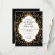 Correspondance de la réponse RSVP retournée par carte postale incluant l'enveloppe blanche. REMARQUE : Il s'agit d'une invitation imprimée à plat, il n'y a pas de parties scintillant réelle ni de feuille métallique utilisée. Les effets sont produits graphiquement. COLLECTION DESIGN : La calligraphie tourbillonnante de script dessiné à la main fleurit et a été transformée en effet de parties scintillant graphique et associée à un cadre de style quatrefoil à double bordure, également dans des effets de parties scintillant chatoyants dorés. À l'intérieur du cadre et derrière votre modèle de texte facilement customisé est une ligne dessinée à la main de coup de soleil. À l'envers, il y a un endroit pour mettre votre monogramme initial dans le design de démarrage de la loterie. Cet invitation est le mariage parfait d'un design sentimental doux et romantique et d'une élégance moderne. Facile à customiser pour toutes les occasions et un ensemble complet de produits sont disponibles. COULEURS : jet d'ébène noir, crémeux blanc cassé et l'or numérique scintillant.