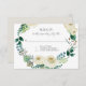 Il s'agit de cartes de réponse RSVP pour retourner par la poste à la mariée, enveloppes blanches sont incluses. Une partie d'un feuillage ramassé de style BOHO et d'une couronne florale rose d'albâtre blanche avec des branches ensemencées de feuilles d'eucalyptus est placée contre le texte pour un style moderne et simple. Main peinte en aquarelles par l'artiste et designer Audrey Jeanne Roberts. L'envers répète la couronne complète en plus petite échelle avec vos monogrammes. Droit d'auteur .