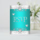RSVP Reply Response Elegant 25th Wedding Anniversary Teal Silver White Diamond Hearts Jewel. Elegant Classy All Occasion Just change. Party birthday invites Template