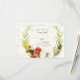 RSVP Response card with guests name(s) and responses for an accurate head count for your catering. Hand painted in watercolor for a rich, elegant and modern touch. The background is of softly painted birch bark with a eucalyptus wreath, acorns a deep red burgundy poppy, white anenome flower, feathers and assorted leaves arranged in a modern BOHO, Bohemian style wreath. Copyright, Audrey Jeanne Roberts, all rights reserved.