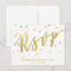 NewParkLane - Elegant Postcard, with 'RSVP' in elegant faux gold script typography, against a white background with gold confetti. Easy to customize in Zazzle with your own names, date or other text for a personalized design. All text style, colours, sizes can be modified to fit your needs. You can also change the background colour to any colour you prefer.