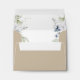 Beautiful beige wedding RSVP envelope with printed return address coordinating our "Elegant Bliss" wedding RSVP cards. NOTES: 1) the default "A2" envelope size selected fits our coordinating 3.5" x 5" RSVP card size, if you make changes on the RSVP card size, please make sure to select the correct RSVP envelope size (see each envelope size measurements explained on product page bottom left area), 2) Option to choose paper type from basic paper or linen. Envelope design with your RSVP return address information along with delicate "Kindly deliver to:" phrase in modern hand written calligraphy on the front. Inside with elegant watercolor greenery and white and blue flowers. Part of our "Elegant Bliss" collection with a variety of coordinating products available including RSVP with and without meal option choices. Also available in dusty blue, navy and white.