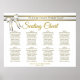 Faites de votre réception de mariage une belle avec ce tableau de sièges. Conçu dans le cadre de notre Suite Mariage White & Gold Ribbon, il présente un design simple mais élégant avec du texte doré sur un arrière - plan blanc avec un ruban blanc avec garniture dorée. Ce graphique montre les affectations de table afin que vos invités aient un temps facile à trouver la bonne table.