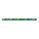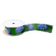 Ruban d'hydrangée bleu avec fleurs et feuilles dispersés le long du ruban satin ou grosgrain. L'Arrière - plan est vert. Les fleurs bleues brillantes font un joli design pour envelopper des cadeaux ou créer des arcs ou des couronnes. L'image convient le mieux au ruban plus fin.