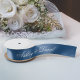 Un ruban mariage bleu classique. Il peut être utilisé pour décorer la voiture ou le bouquet de la mariée. Il a les noms de la mariée et du marié écrit dans une calligraphie blanche élégante.Classic, Bleu, ruban Mariage, Élégant Script, Calligraphie, ruban bouquet de mariée,
