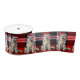 Un ruban à thème de vacances pour amoureux du Malamute de l'Alaska avec un adorable chien dans un casquette de Noël est jumelé avec du plaid rouge, noir et blanc.