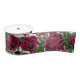Rose Bourgogne, large ruban pour décoration mariage. Les roses ouverts réalistes, avec de la verdure, sont mélangés avec des fleurs rouges profondes de laine de miel sur un arrière - plan blanc. Utilisez pour la confection d'arc, pour envelopper bouquets et pièces de centre fleuris, décorer les chaises, envelopper les cadeaux et bien plus encore. Les bobines de ruban sont offertes en deux largeurs, en tissu satiné et grosgrain. Les options de longueur de ruban sont des bobines de 2, 6 et 10 verges.