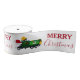 Un joli exemple d'un camion à ordures de recyclage de Noël portant un chapeau de Père Noël et décoré de lumières de Noël avec des mots "Joyeux Noël". Un ruban de Noël idéal pour les amateurs de camions à ordures, petits ou grands, les filles ou les garçons.