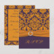 Cette carte de réponse damassée orange mandarine et violette aubergine comporte un ruban IMPRIMÉ et une broche bijou qui correspond à l'invitation de mariage présentée ci-dessous. Le texte et le choix du papier sont personnalisables. Si vous avez besoin d'autres articles assortis, veuillez envoyer un e-mail à niteowlstudio@gmail.com avec votre demande.