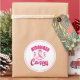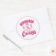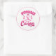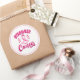 L'autocollant est affiché en forme ronde large avec un ruban rose. Customisez cet objet ou achetez tel quel. Sensibilisation au cancer du sein