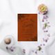 Cette belle carte de faire-part de mariage save the date présente une véritable impression en or à feuille sur un fond marbré orange rouille ou brun ombre. Le beau design présente une calligraphie scripturale avec des fioritures de dentelle florale dans les coins. Une façon merveilleuse, élégante et chic de faire savoir à vos amis et à votre famille que vous célébrez votre mariage prochain.