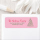 Comme vous le voyez, la conception présente une main rose rouge vert unique faite et dessinée arbre de Noël fait de rubans. Avec la typographie de votre famille écrite à la main rouge. Et votre adresse de retour verte manuscrite. C'est personnalisable sur arrière - plan rose.