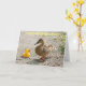A funny photo of a yellow rubber duck looking at a mother mallard duck. "Mom, is that you?" This cute bird picture would be fun gift for any bird lovers or mothers.