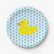 Enjoy our blue polka dot rubber duck paper plates for baby showers or birthday parties.