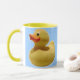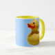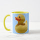Clean fun at its best! "Rubber duckie, you're the one... you make bathtime lots of fun!" Inspired by the "Rubber Duckie" song, this fun mug will bring smiles to everyone's faces. (Note: Light blue handle looks great with this design too)