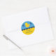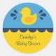 This modern and colourful design features a yellow rubber ducky on a blue background and a few drops of water. The yellow polka dots half bottom adds a fun touch. Gender-neutral sticker. Use it for party favours or to seal envelopes. Add your own wording.