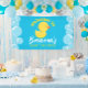 Rubber Ducky Baby Shower Welcome Hanging Vinyl Banner in Blue.