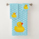 Rubber Ducky Duck Ducks Sets - Bathroom Towel Set - Blue Waves Pattern