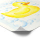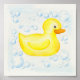 Cute yellow rubber duck surrounded by bubbles, ready for framing and hang on your bathroom wall.