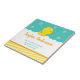 This cute and fun tile features an adorable yellow duck in white soapy bath bubbles on a bright green background with an orange ribbon and yellow stripes. The text combines handwritten script and sans serif fonts for a stylish and modern look. It can be personalized with your baby's birth stats, such as name, size, date and time of birth, or if you would like to give it as a shower gift you are able to edit and remove text.