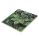 Bring in the green with these rubber tree leaves. The tropically lush artwork on this 6” Ceramic Tile is made from an original closeup photograph by MaeFlowers of a rubber tree. The leaves are smooth and shiny, in natural shades of green, from a lighter, yellow green in the sunlight to a deeper green in the shadow areas. The leaves are plump and stiff looking with their light yellow green stems.