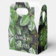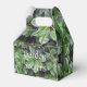 On this Favour Box - Lose yourself in the depths of this green wonderland, a pattern by HomeWare, made from an original photograph of a rubber tree. The closeup photo has been repeated to form layers of leaves, creating mysterious depth in this lush, tropical design. The leaves are shiny and smooth, in natural shades of green, from a lighter, yellow green in the sunlight to a deeper green in the shadows. Their light yellow green stems add a linear pattern to the photo design. There is text which is set for you to personalize, use as is, or delete if you prefer.
