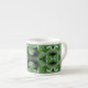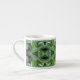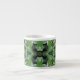 Go green with the rubber tree pattern on this Espresso Cup. This tropically lush artwork was made from an original closeup photograph by HomeWare of the leaves of a rubber tree. The leaves are smooth and shiny, in natural shades of green, from a lighter, yellow green in the sunlight to a deeper green in the shadows. The leaves are plump looking and their light yellow green stems add a linear pattern to the photo design.