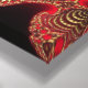 A sparkling fractal design with ornate spirals of dark and vivid red, overlaid with gold filigree like metallic seashells and studded with glittering rubies.